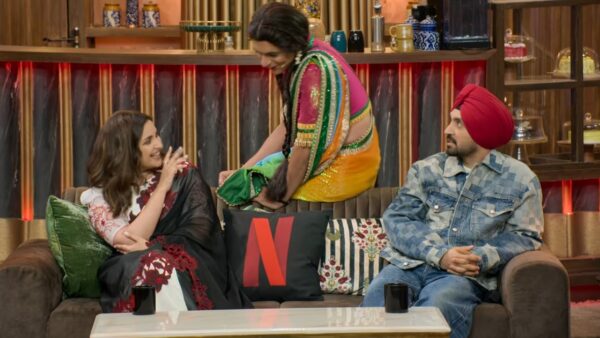 The 3rd episode of The Great Indian Kapil Show on Netflix kicked off with the star-studded cast of the upcoming film Chamkila 2024, featuring Diljit Dosanjh, Parineeti Chopra, and Imtiaz Ali, gracing the stage as special guests. Kapil extended congratulations to Parineeti on her recent marriage to politician Raghav Chadha before delving into a series of humorous exchanges.