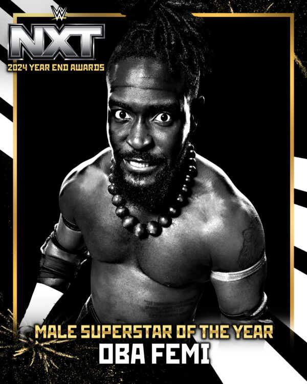 In true dominant fashion, Oba Femi grabbed the award for Male Superstar of the Year even before it was officially announced! Femi dismissed the award as merely a prop in a popularity contest, emphasizing that the fans do not dictate his performance. With a bold statement, he promised to claim the NXT Championship next week at New Year’s Evil. Femi’s unparalleled confidence cemented his status as the top male superstar of 2024.