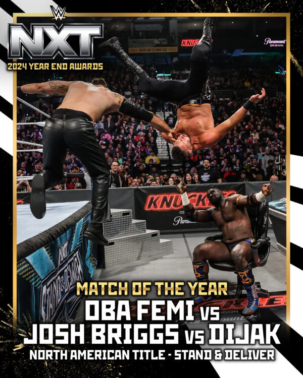 This electrifying triple-threat match showcased Oba Femi’s dominance as he successfully retained his NXT North American Championship. As Femi’s first major title defense, the match was hard-hitting and unforgettable, earning its place as the NXT Match of the Year.